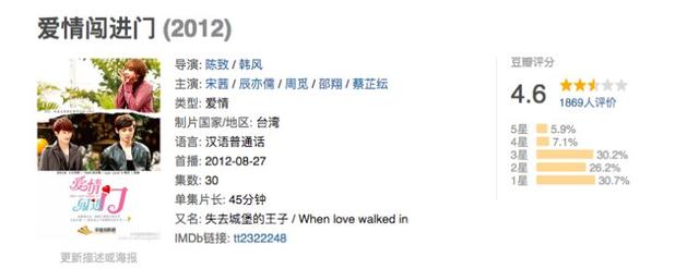 她的第一部作品是和辰亦儒主演的《爱情闯进门》,至于作品咋样,大家看一下评分了解一下。