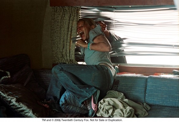 旅程渐渐进入漫漫黄沙荒无人烟的地带,在一次夜晚扎营时休息时,他们遭受到了一群怪物的袭击,原来此处附近曾有一个废弃美军研制核武器的基地,核实验让附近一个村庄的人们遭受到了可怕的核辐射,活下的人身体变的畸形且性情嗜血而暴力,他们伏击这一家人,对他们进行残忍的捕杀,原本老实懦弱的女婿达乌·布库威斯基(亚伦·斯坦福饰)决心振作起来,做出最强烈的反击。