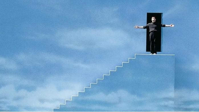 这个镜头是男主发现自己一直生活在被别人设计好的生活里,然后逃离虚拟世界,开始进入现实世界之前与虚拟世界的负责人的告别