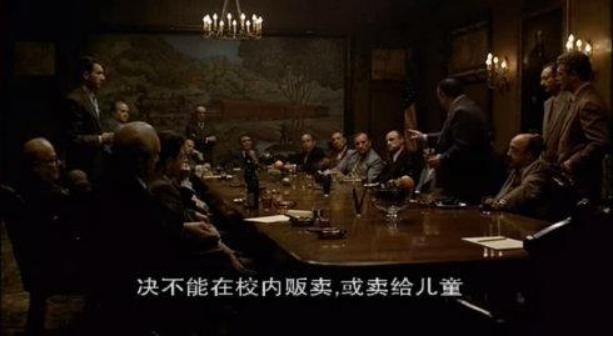 这个镜头是教父的儿子被对手杀死之后,约了黑社会的头目一起谈判