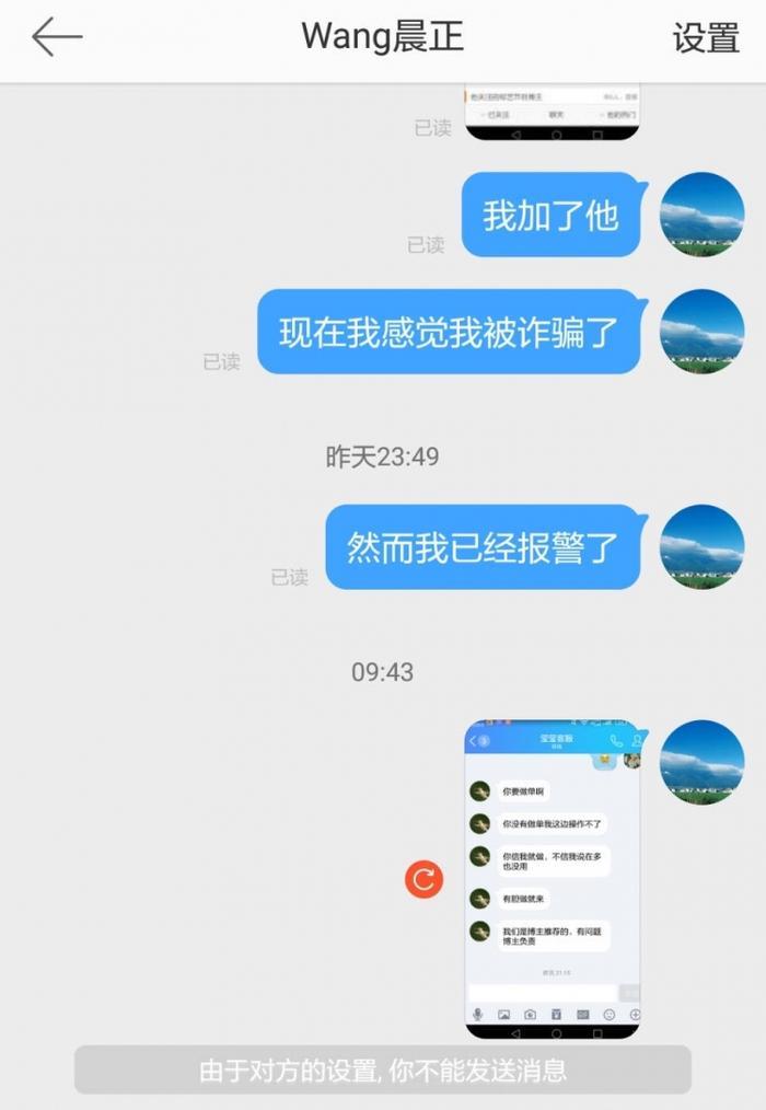 在和王晨正微博的聊天对话里被拉黑。但是不清楚被卷走了多少钱。