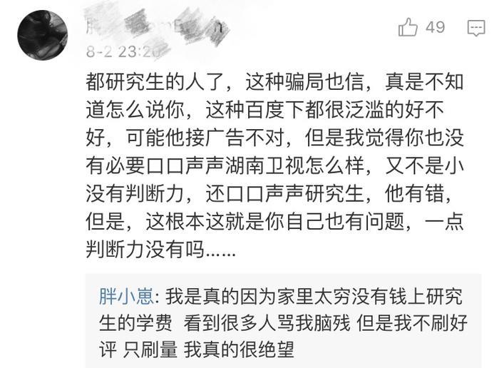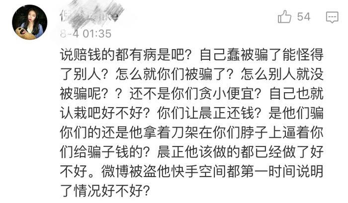 因为不断投钱而感到不安,这位@小胖崽网友中间和打广告的王晨正本人是有联系的。