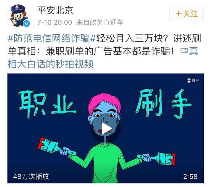 来自平安北京的提示——兼职书单的广告基本都是诈骗。