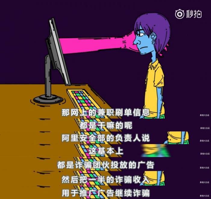 看完视频的橘子君总结一下,刷单是一个很复杂的事情,是很少会用到兼职的,网上能看到的兼职刷单广告都是诈骗团伙的广告。