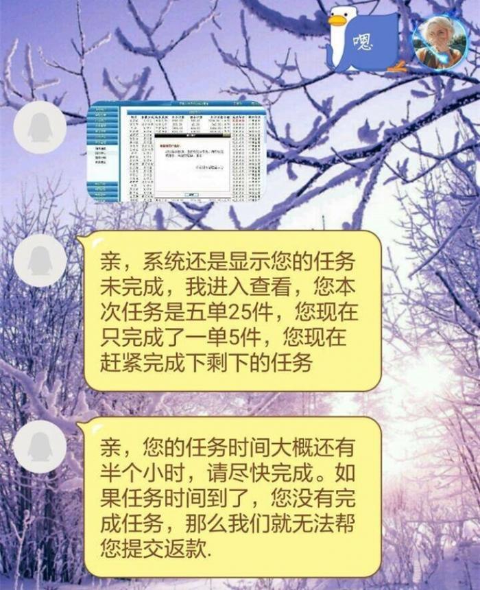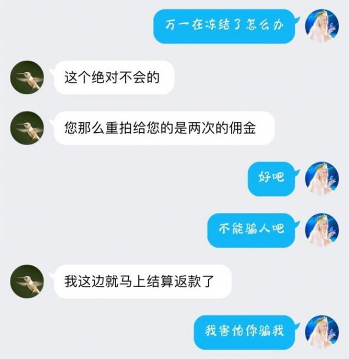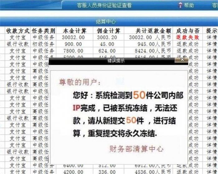 中间对话提及到的所谓账户冻结的状况,大意是后台系统冻结,需要你再次提交一些任务重新结算。