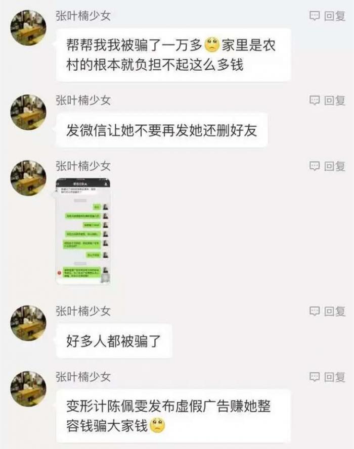 网友还添加了网红陈佩雯本人的微信,说完自己被欺骗的经历,就被删除好友了。