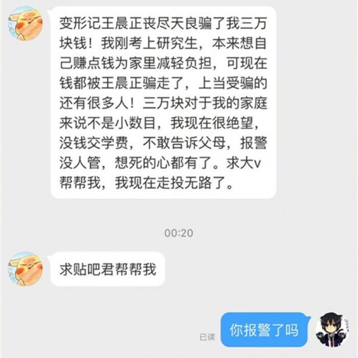 《变形记》王晨正微博诈骗3万块?被告后说是盗号?