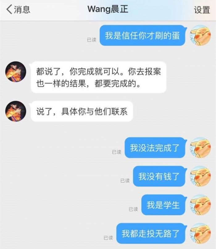 王晨正发布的这些刷单兼职广告,已经不止让一个网友被骗走了钱,除了这位小胖崽网友,还有别人。