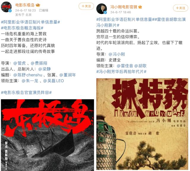 电影《东极岛》(左)《抓特务》(右)官宣信息