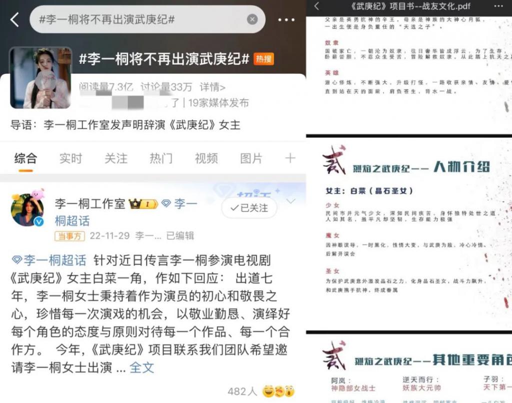 李一桐辞演《烈焰之武庚纪》(图源:微博)