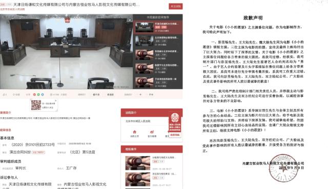 在电影领域,闹得最凶的是《小小的愿望》。主演彭昱畅工作室发表声明,称《小小的愿望》片方模糊演员排位,在电影制作方发表声明道歉后,彭昱畅工作室再发通知函,表示彭昱畅与片方的合同现已宣告解除。双方公司还因此对簿公堂。一部以兄弟情为主要看点的电影,却出现了这样的场外风波,对于电影的伤害是显而易见的。