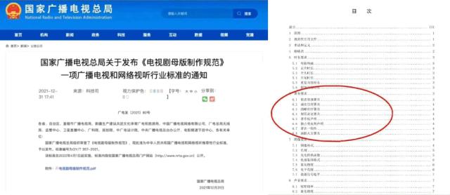2021 年 12 月,国家广播电视总局也在官网公示《电视剧母版制作规范》广播电视和网络视听行业标准报批稿,其中的 6.8 条款特别提到 " 演职人员署名 " 的问题:演职人员在电视剧的署名方式、顺序、位置等由聘用合同约定,制片人应在与演职人员签署聘用合同时就署名问题进行沟通和约定,规避争排位等署名纠纷的发生。