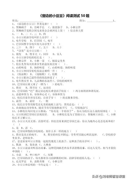 《窗边的小豆豆》阅读测试50题(含答案),快来测试一下吧