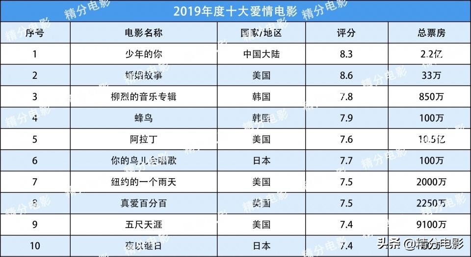 2019年度十大爱情电影: