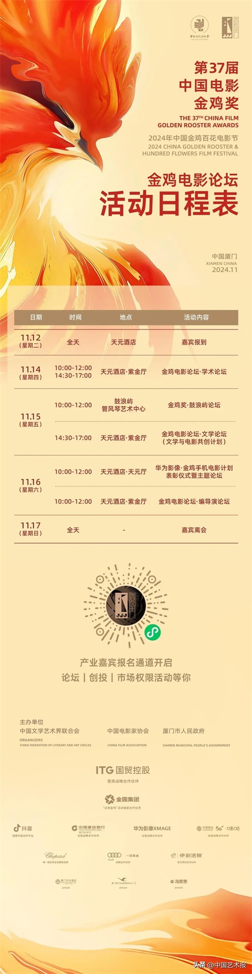 2024年中国金鸡百花电影节金鸡电影论坛将于11月14日至16日在鼓浪屿及厦门天元酒店举办。本届金鸡电影论坛共设置四场主题论坛,包括鼓浪屿论坛、学术论坛、文学论坛和编导演论坛。