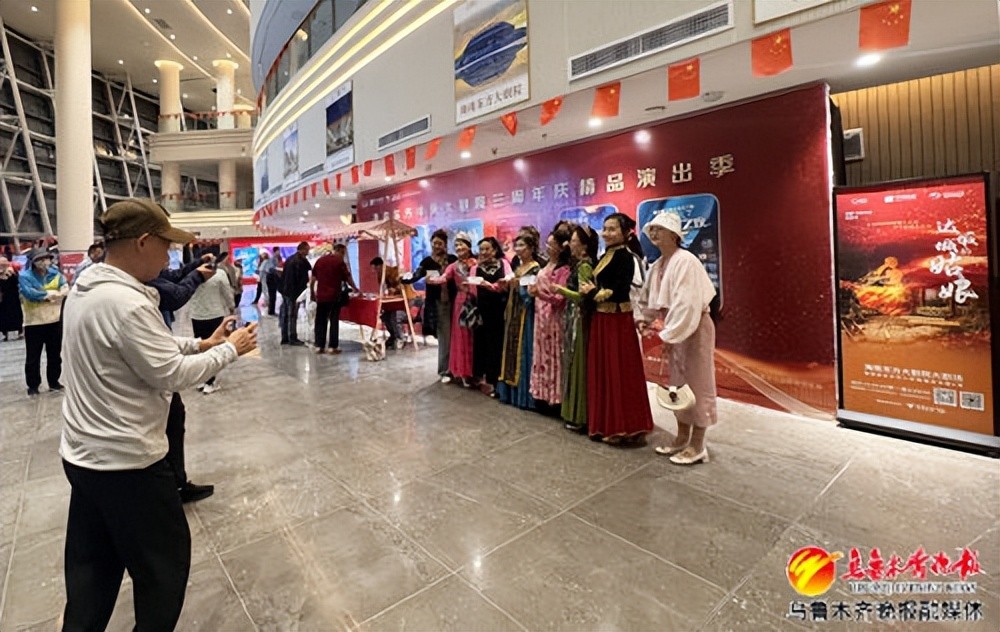 当天,是《达坂城的姑娘》全国巡演的又一站,演出开场前,演员们与当地居民游客在剧场内互动,大屏上播放着“骄阳看雪 乌鲁木齐”文旅宣传片,大美乌鲁木齐,冰雪魅力为现场带来清凉的风,滑雪、雪山、冰屋美食等令现场观众仿佛雪花拂面,向大家递出乌鲁木齐文旅名片。
