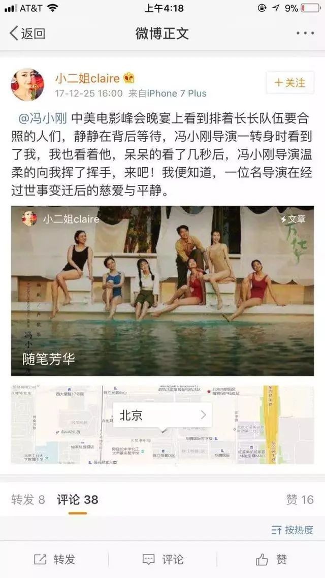 实话说,文章篇幅还不短,充满了精神病患者思维奔逸式的胡言乱语,作者说她爱导演,是此生唯一的爱。