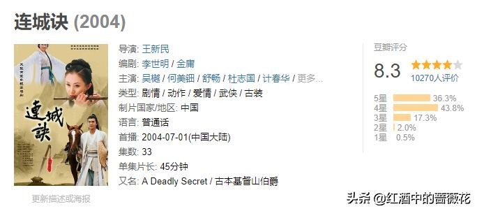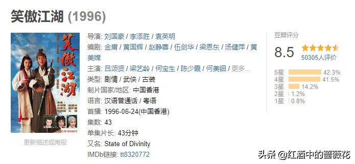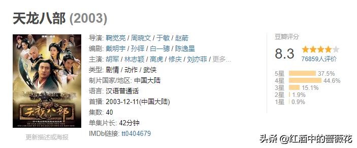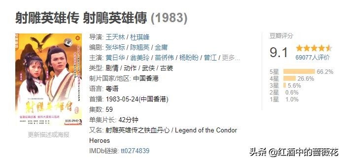 个人简评:曾经何时,83版《射雕》一直都是金庸剧的天花板所在,高居所有金庸剧第一位,即便是现在,它的评分也依旧和第一相同,唯一输掉的,就是评分人数而已。
