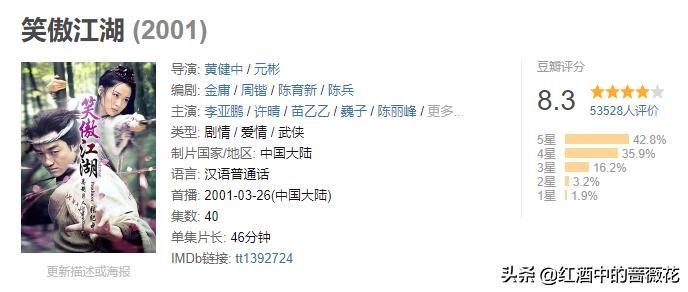 个人简评:01版《笑傲江湖》应该是近年来豆瓣涨分最快的一部金庸剧,若干年前,这部剧还在不及格区域徘徊,现如今,这部剧已经跻身8分大关,而且评分还有继续上涨的可能。