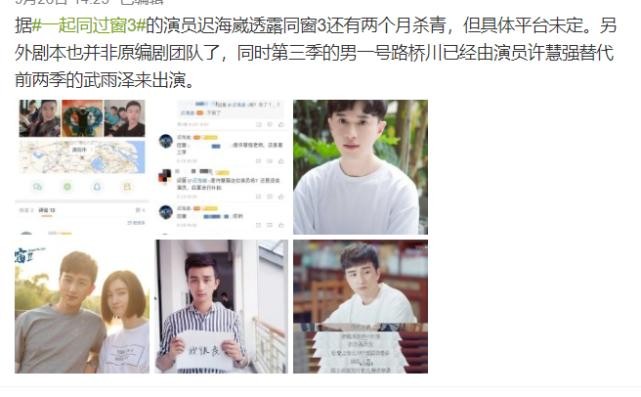 从网上传出的消息上看,第三季的男一号路桥川将由演员徐慧强饰演,但消息是否真实,我们还需等待官方进行回复。在此之前,前两季的导演兼编剧毕鑫业发出消息,内容是:“四年没回老家了,发现我的房间有很大改动,桌子、椅子、床、枕头、被子都发生改动”,要知道《一起同过窗》第二季播出已过四年,从导演发出的消息上看,这部剧最少要变动五处。