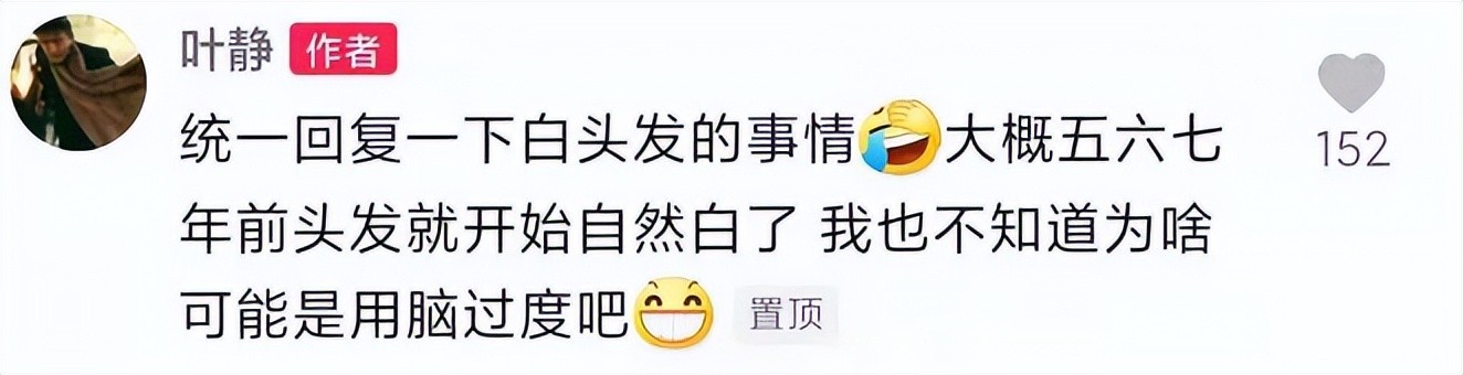 其实早在2021就有媒体报道出叶静已经是头发花白,那时的叶静在踢球,两年多没有拍戏罕见的露面着实让很多人感慨怎么会变得这么老,至于白发的原因叶静曾经自述不知道什么原因,或是演员的压力太大所致吧。