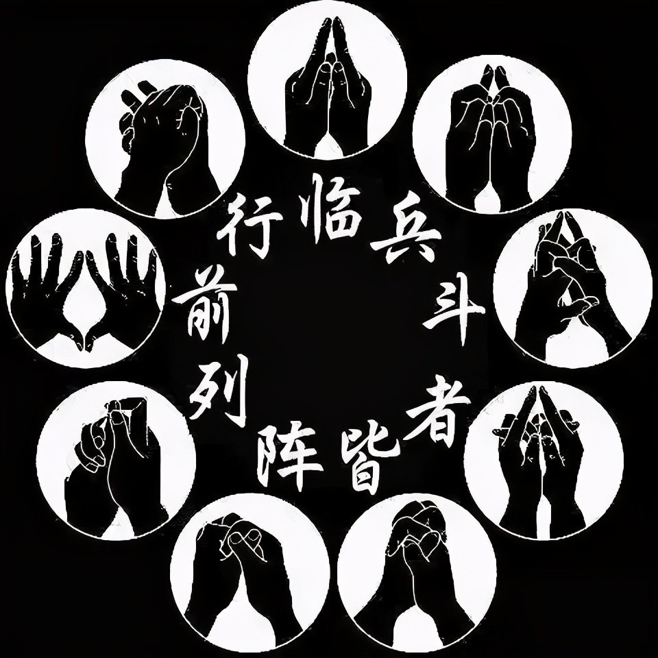 在中国古代,佛教密宗在传播的过程中,逐渐吸收了一些道教秘祝,最有名的便是晋代葛洪《抱朴子》中记载的“六甲秘祝”,后演变成大名鼎鼎的“九字真言”,即:临、兵、斗、者、皆、阵、列、在、前。
