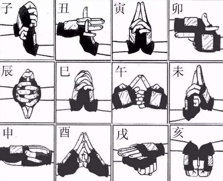 回到《火影忍者》,其中有十二种用于“结印”的手诀,名字取自中国人常说的“十二地支”,即:子、丑、寅、卯、辰、巳、午、未、申、酉、戌、亥。而将这十二种手诀任意搭配、交互结出,就会释放不同的忍法。