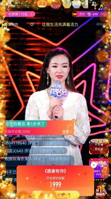 于洋超强的live现场引来无数好评,不少观众在听歌时,轻松在直播间找到歌曲评论功能,为《感谢有你》留言打call!不一会儿,《感谢有你》biubiubiu~猛涨,接连突破999+、1999+两道门槛!