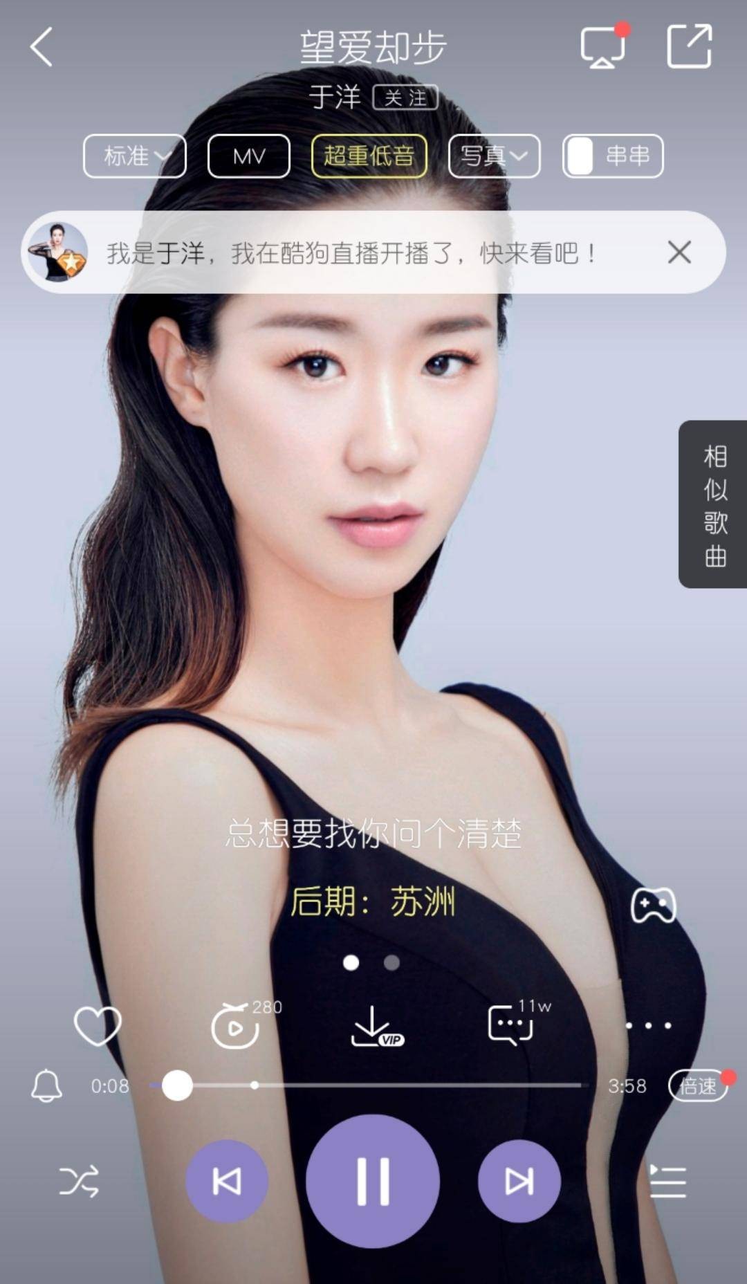 《望爱却步》原唱于洋空降酷狗首唱会,新歌斩获1999+热评