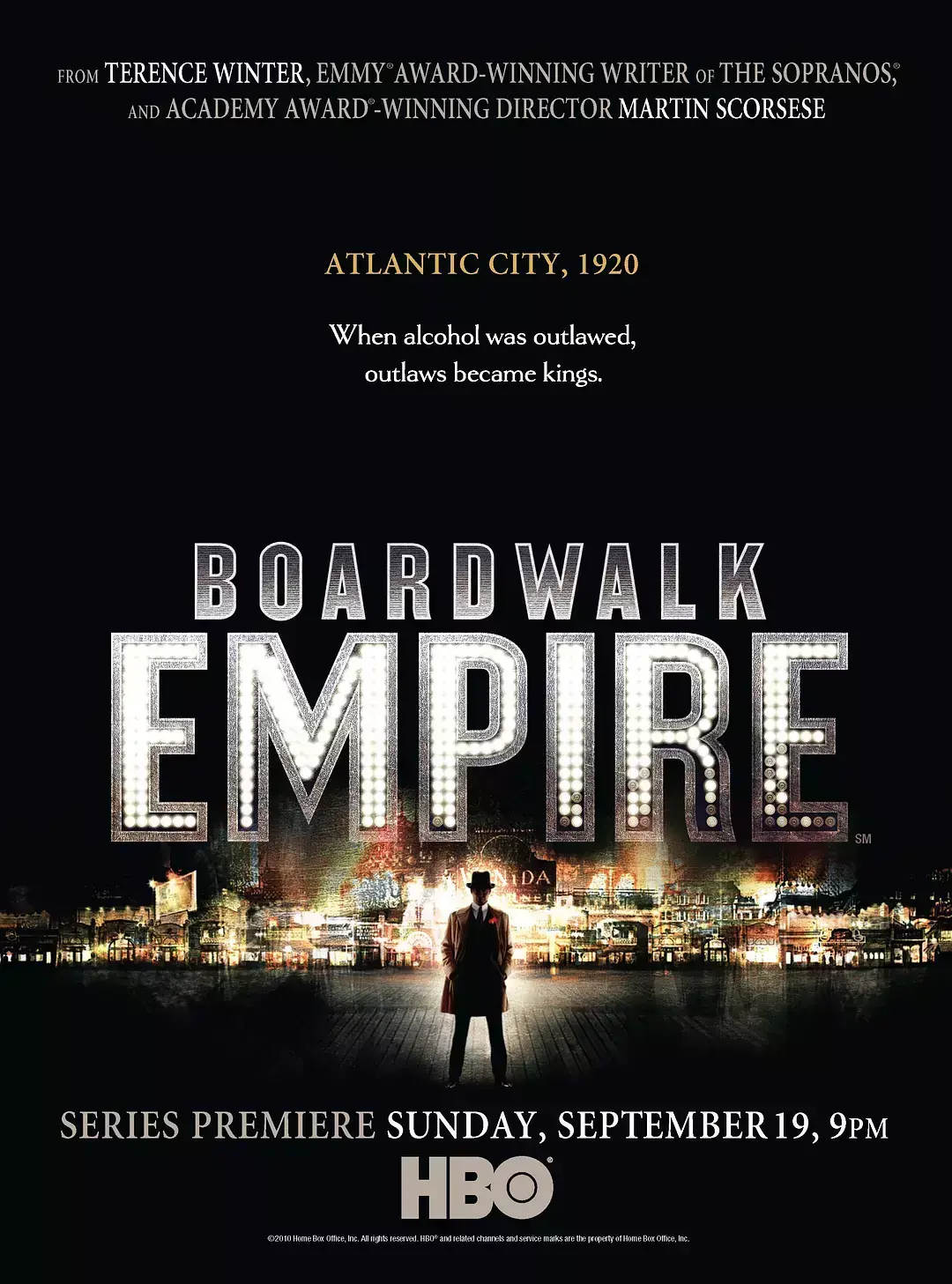 故事设定在上世纪20年代的大西洋城(Atlantic City),联邦政府颁布禁酒令(1920-1933年)后,公开售卖酒类商品成为一种违法行为。在这种背景下,各种黑帮组织为争夺黑市控制权展开了你死我活的斗争。该剧首季为12集。2011年1月16日,第68届金球奖获奖名单中,《海滨帝国》成2011年金球奖电视赢家。