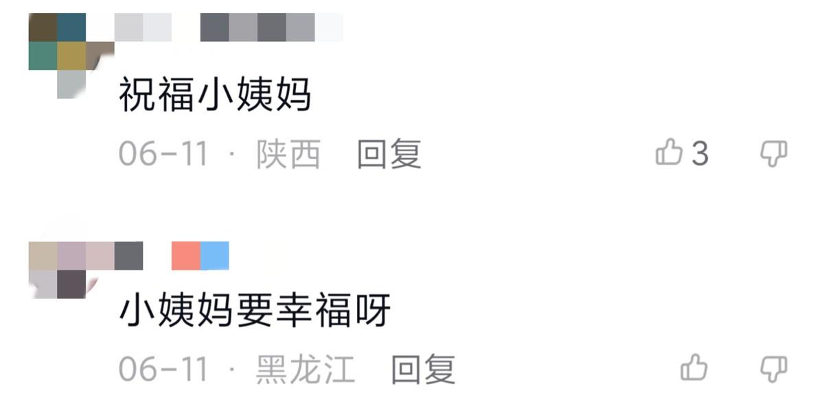虽然媒体未曝出这位神秘男子的身份,但对于这个消息,网友们还是纷纷在网上评论称“祝福小姨妈”“小姨妈要幸福呀”,还有网友表示“她的年纪谈恋爱我们该祝福”。