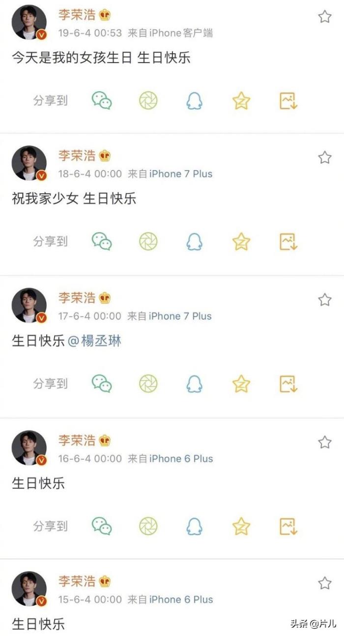 六年间,李荣浩对杨丞琳庆生的称呼也逐年在改变,从起初的默默发“生日快乐”,到主动提醒是专门为杨丞琳庆生,以及后来的从“我家少女”、“我的女孩”到“老婆”,从中不难看出李荣浩非常用心。