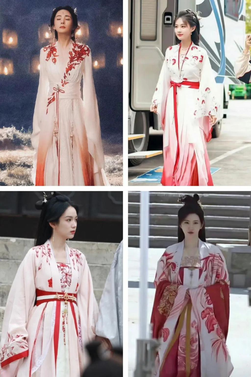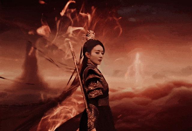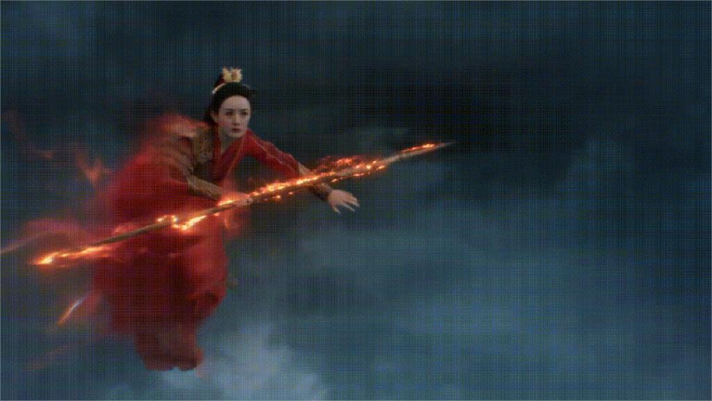 还有这样全身红的造型,我想不出哪个仙侠剧里没有。自从电影《英雄》就泛滥成灾,好像穿个大红就是女侠。