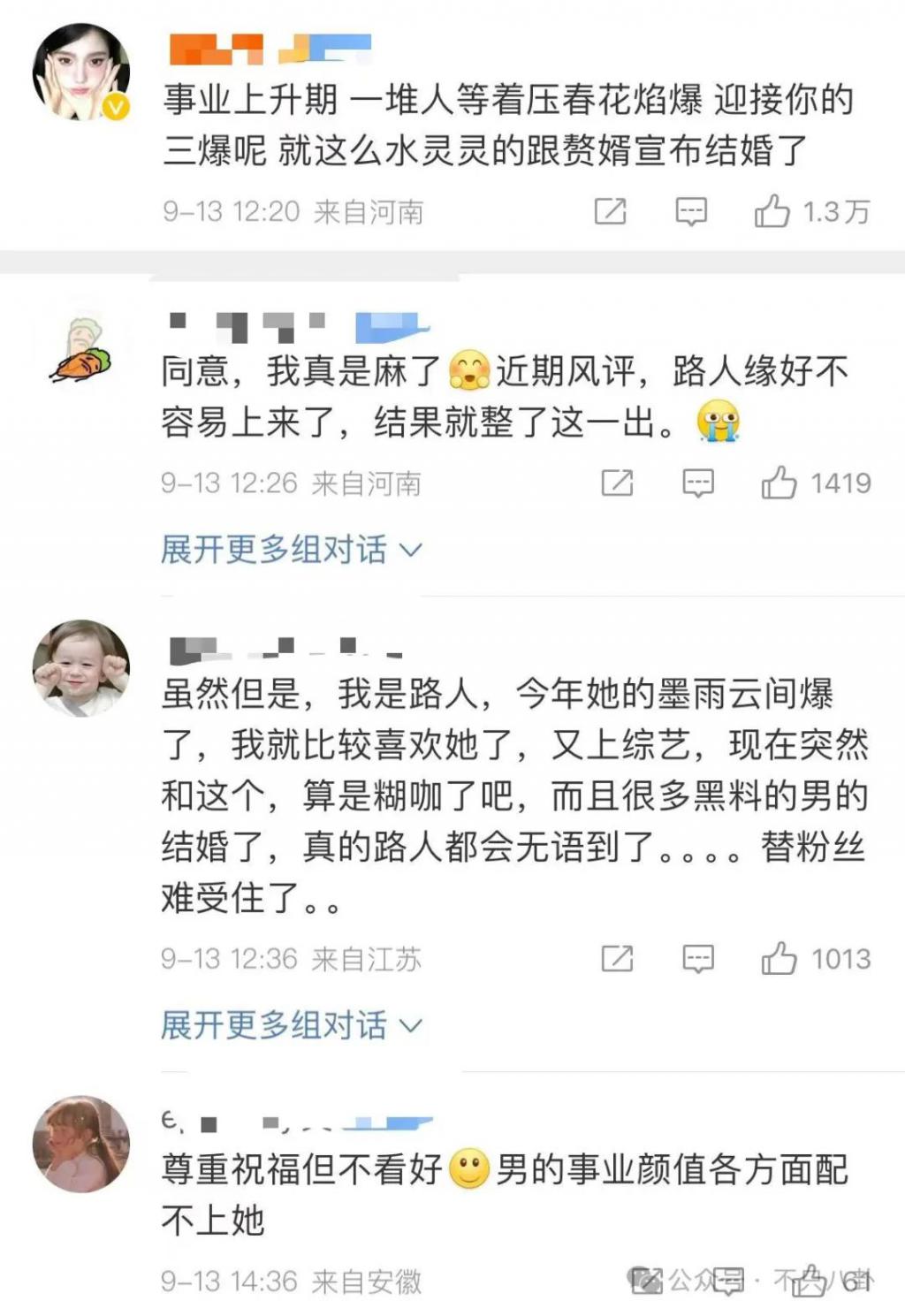 有网友说:姐你哪怕是等到《春花焰》播完再官宣呢……