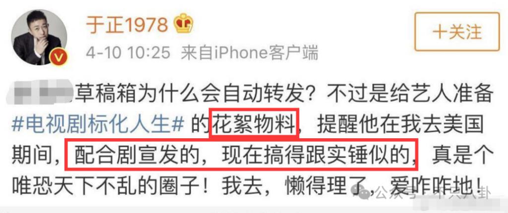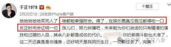 于正也跑出来否认,说网友啥都能牵强附会,反正时间会证明一切。