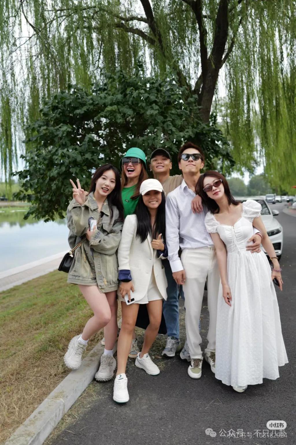 还有朋友们的合照,洪尧依旧是把吴谨言搂在怀里,这次大大方方秀恩爱了。