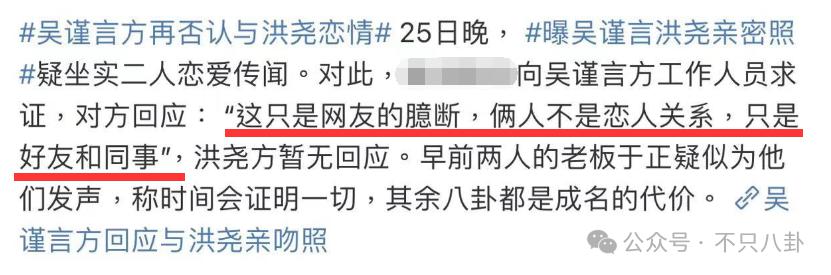 这是吴谨言第一次否认与洪尧的恋情,OK,暂且称两人为同事吧。