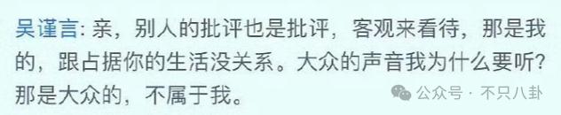但吴姐不为所动并表示:大众的声音我为什么要听?那是大众的,不属于我。