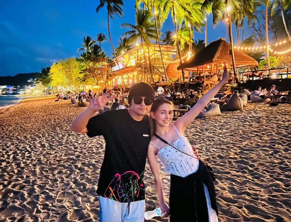 周杰伦晒与昆凌海边约会合照 俩人亲密搂腰好恩爱
