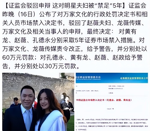 赵薇与黄有龙夫妇还因 “空手套白狼” 式的收购行为,受到了相关部门的严厉处罚。