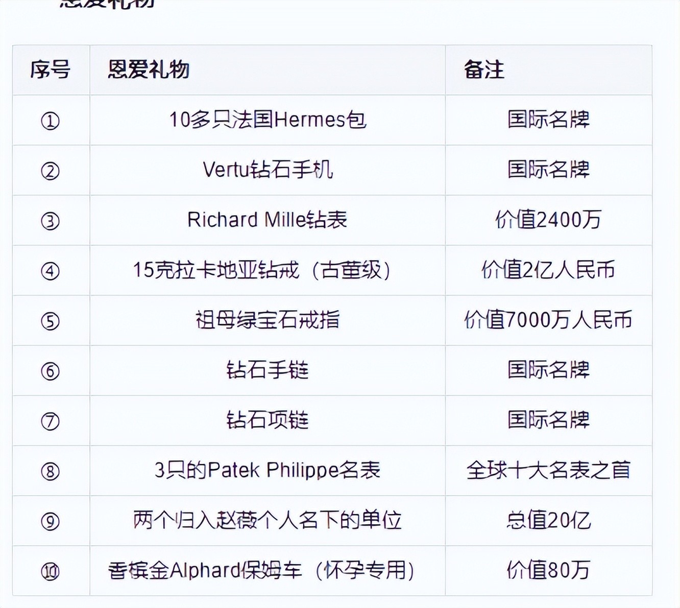 那出手可谓是“壕无人道”,送出名牌包包、钻石手机等奢侈礼物,总价值超数千万。