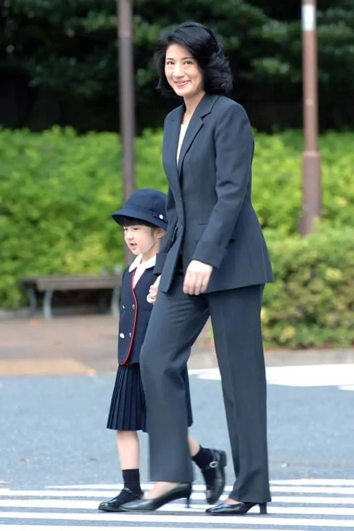 2006年10月,四岁多的爱子公主和母亲前去观看学习院大学初中部的运动会。一身职业装的雅子精英感十足,仿佛回到了她年轻时担任外交官的时候。
