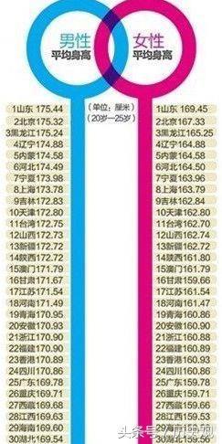 全国各省人均身高排名,山东人最高湖北人最矮看看你的省份排第几