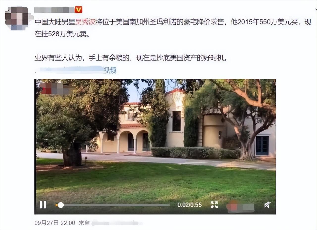 而吴秀波的生活,却不太好,之前有网友爆料称吴秀波在紧急出售位于美国加州的一套豪宅。