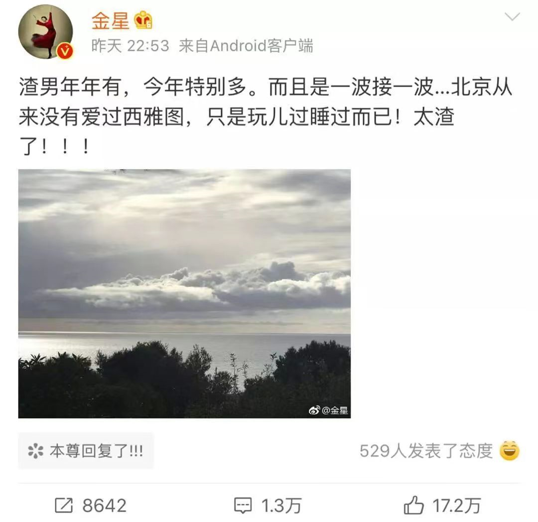 后来,网上出现了两种声音,一种是支持吴秀波的,还有一种是以王思聪和金星为首炮轰吴秀波“不厚道”的人。