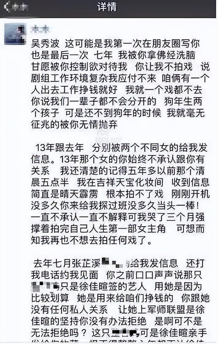 内容表示,吴秀波忘恩负义,抛弃了与他有7年感情的情人。