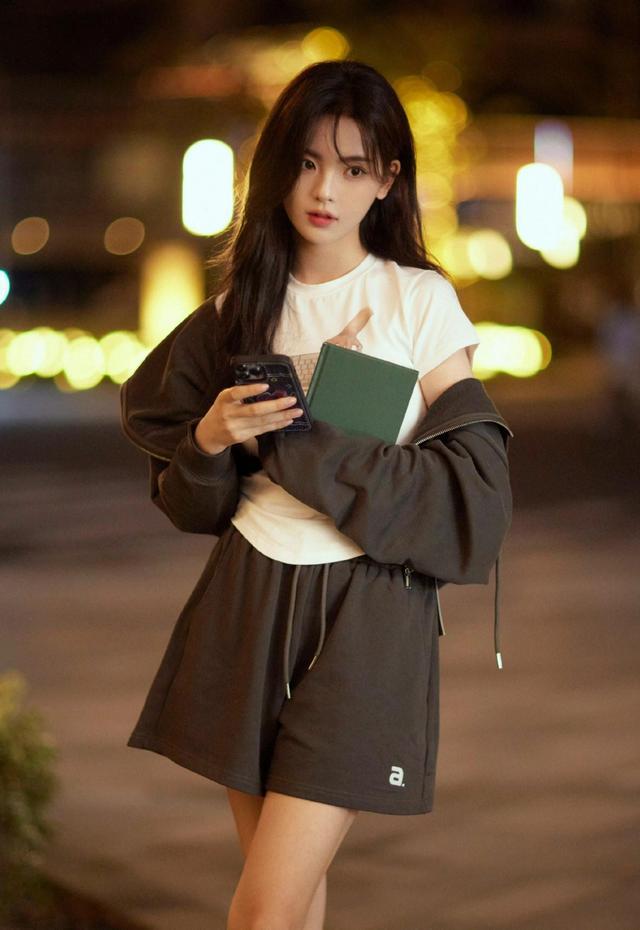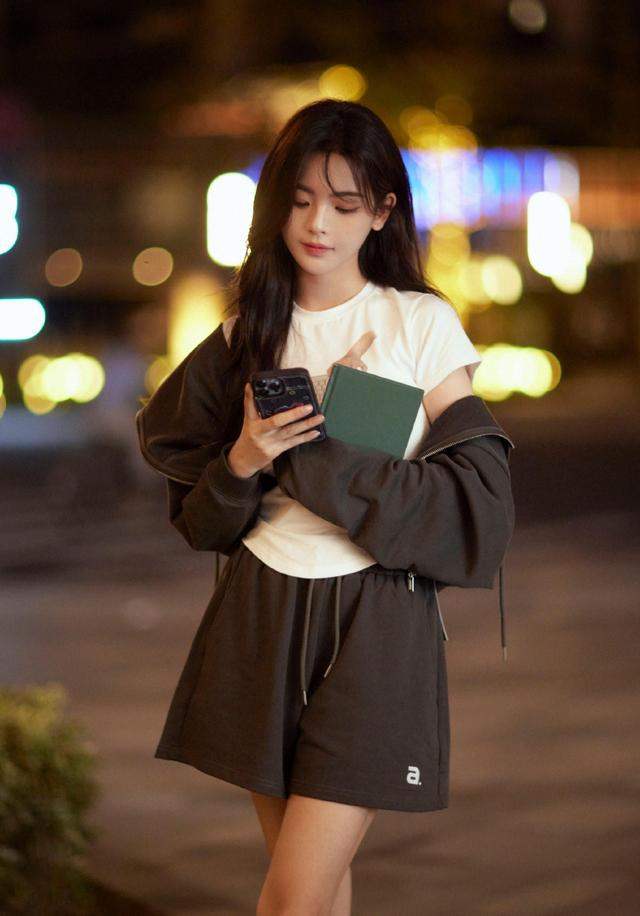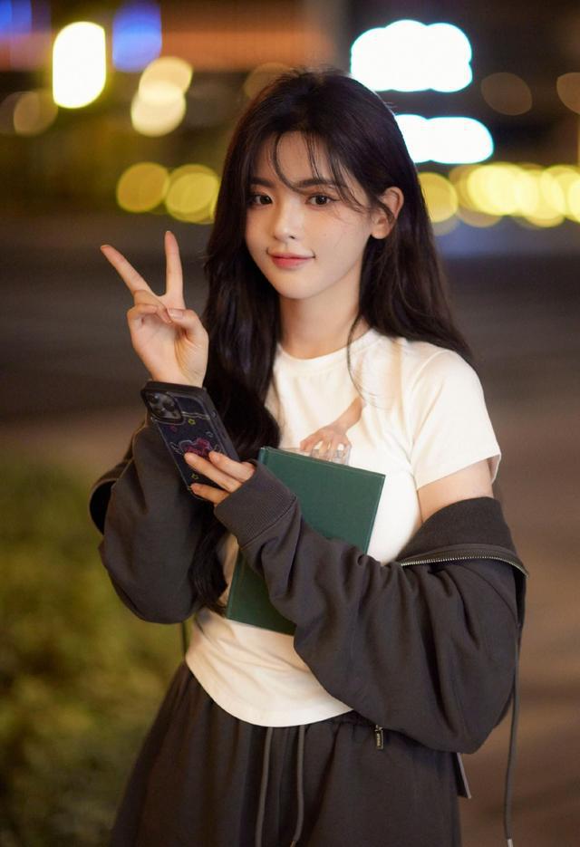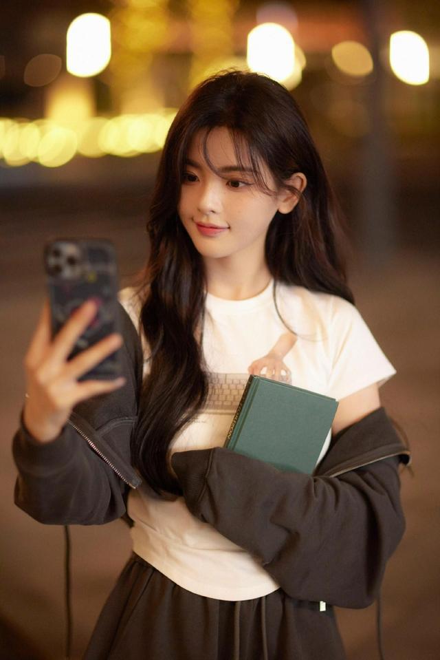 杨超越街头校园风写真温柔灵动 手执书本秋日氛围感满满