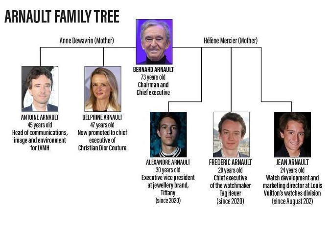 众所周知,73岁的伯纳德膝下有5个孩子,目前都有家族企业中担任要职,其中只有最小的两个儿子还没有结婚,他们都是90后,年少有为。