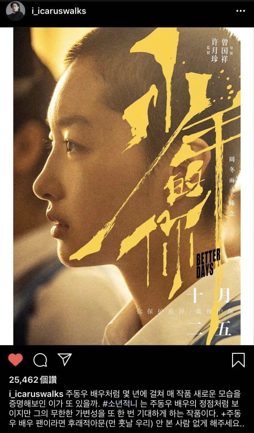 再一查,李周映还在ins上曾推荐过《少年的你》(瞬间明白了)!