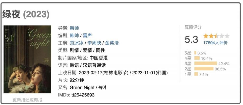 许久未见的范冰冰,其全新力作《绿夜》正式上线韩国流媒体。